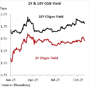 CGBs should get a boost after reports indicate that the PBoC is set to resume trading operations after an extended pause since January. We think that a need to lean against excessive market moves likely underpinned the PBoC’s latest decision. While CGB yields were depressed (10Y yields were close to 1.60% and the curve was overly flat) at the start of the year, the situation has changed over the past few quarters. Amidst optimism in Chinese tech and more recently, the thaw in China-US trade tensions, the surge in China stock indices have led to a concomitant jump in medium to long-term CGB yields. However, long-end yields have probably ran too far with 10Y yields almost touching 1.90% in late September. This is at odds with China facing deflationary pressures (CPI is still negative in YoY terms) amidst a still-challenging economic backdrop (there has been no discernible rise in the official services PMI while the manufacturing PMI is still below 50). The PBoC would likely retain a dovish bias until there are more concrete signs that economy is recovering. This would also keep a lid on how high long-end yields could rise (and how steep the CGB curve could get).