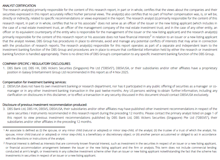 Any valuations, opinions, estimates, forecasts, ratings or risk assessments herein constitutes a judgment as of the date of this report, and there can be no assurance that future results or events will be consistent with any such valuations, opinions, estimates, forecasts, ratings or risk assessments. The information in this document is subject to change without notice, its accuracy is not guaranteed, it may be incomplete or condensed, it may not contain all material information concerning the company (or companies) referred to in this report and the DBS Group is under no obligation to update the information in this report.