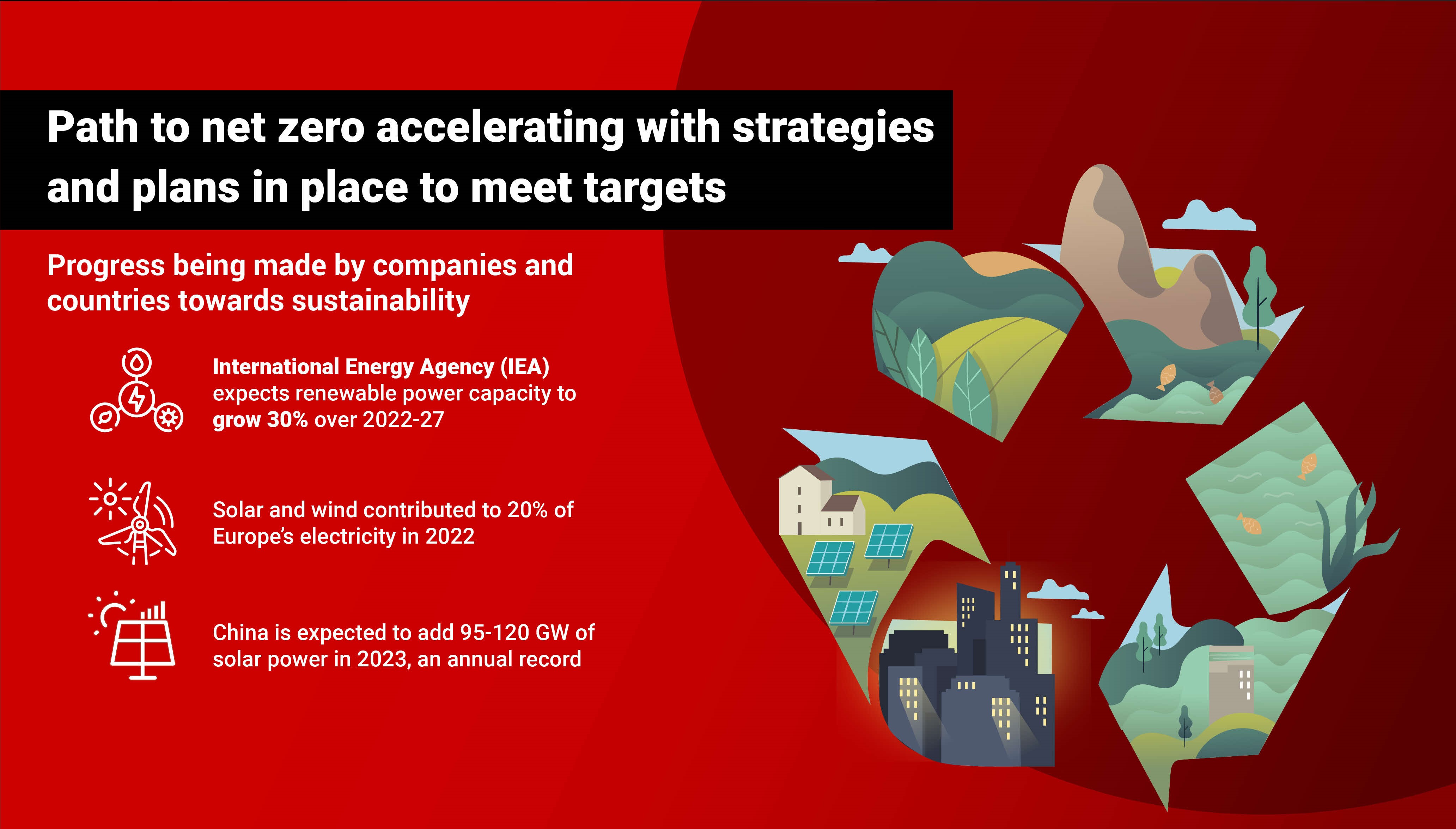 Net zero and carbon neutral commitments highlight the growing urgency and focus on combating climate change. 140 countries including the US, China, and India announced or are considering net zero targets, covering close to 90% of global emissions.