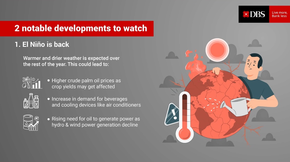We are watching two investment themes: 1) El Niño is back with warmer and drier weather expected over the rest of the year; and 2) AI is breathing new life to the tech recovery. Beyond these, we remain positive on the Hong Kong market.