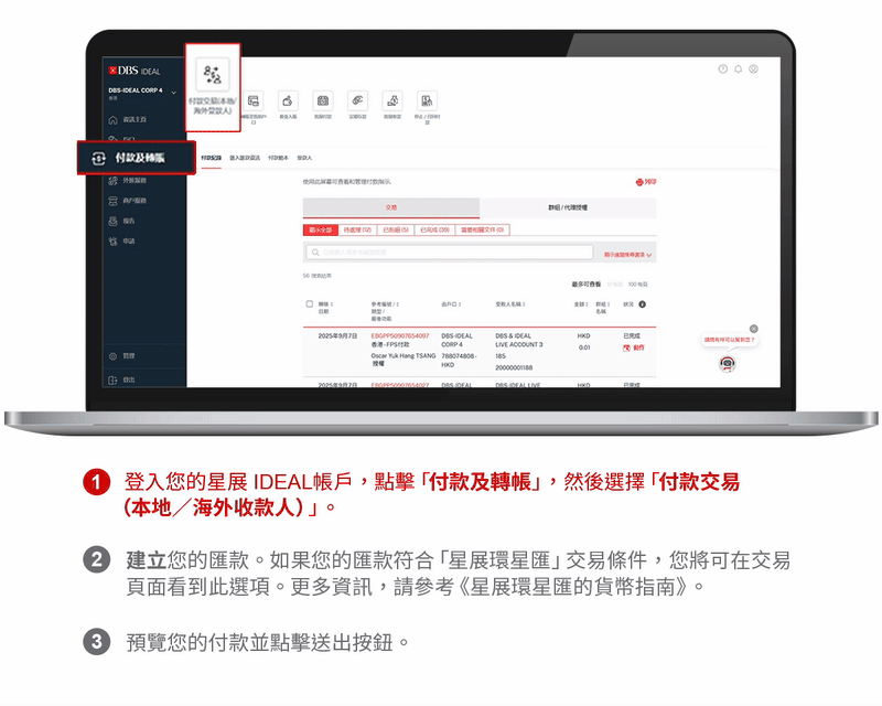 | 星展环星汇 GlobeSend 现已于 星展 IDEAL 上提供,并将逐步扩展至 IDEAL Connect 和 RAPID。申请星展IDEAL并下载 IDEAL 流动理财应用程式。 |
