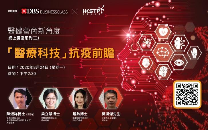 DBS BusinessClass「醫健營商新角度」系列首場網上講座反應熱烈,而第二場講座將與香港科技園(HKSTP)聯手舉辦,主題為「醫療科技」 抗疫前瞻。香港科技園會為我們分析業界動向,並邀請了兩間初創企業分享最新研發的抗疫醫療科技項目。星展中小企業銀行代表亦會提供為醫療保健界企業而設的貸款及銀行服務的重要資訊。
