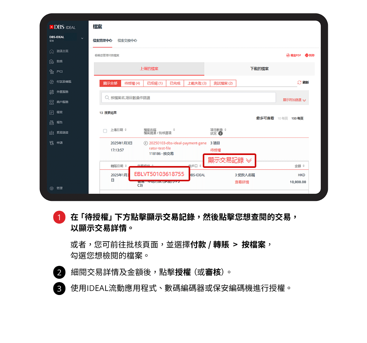 - 請定期登入DBS IDEAL網上理財平台,確保您的登入賬戶仍然有效。由於保安理由,如果您所授權的代表一年以上未有登入我們的系統,我們可能會撤銷您的 IDEAL存取權。