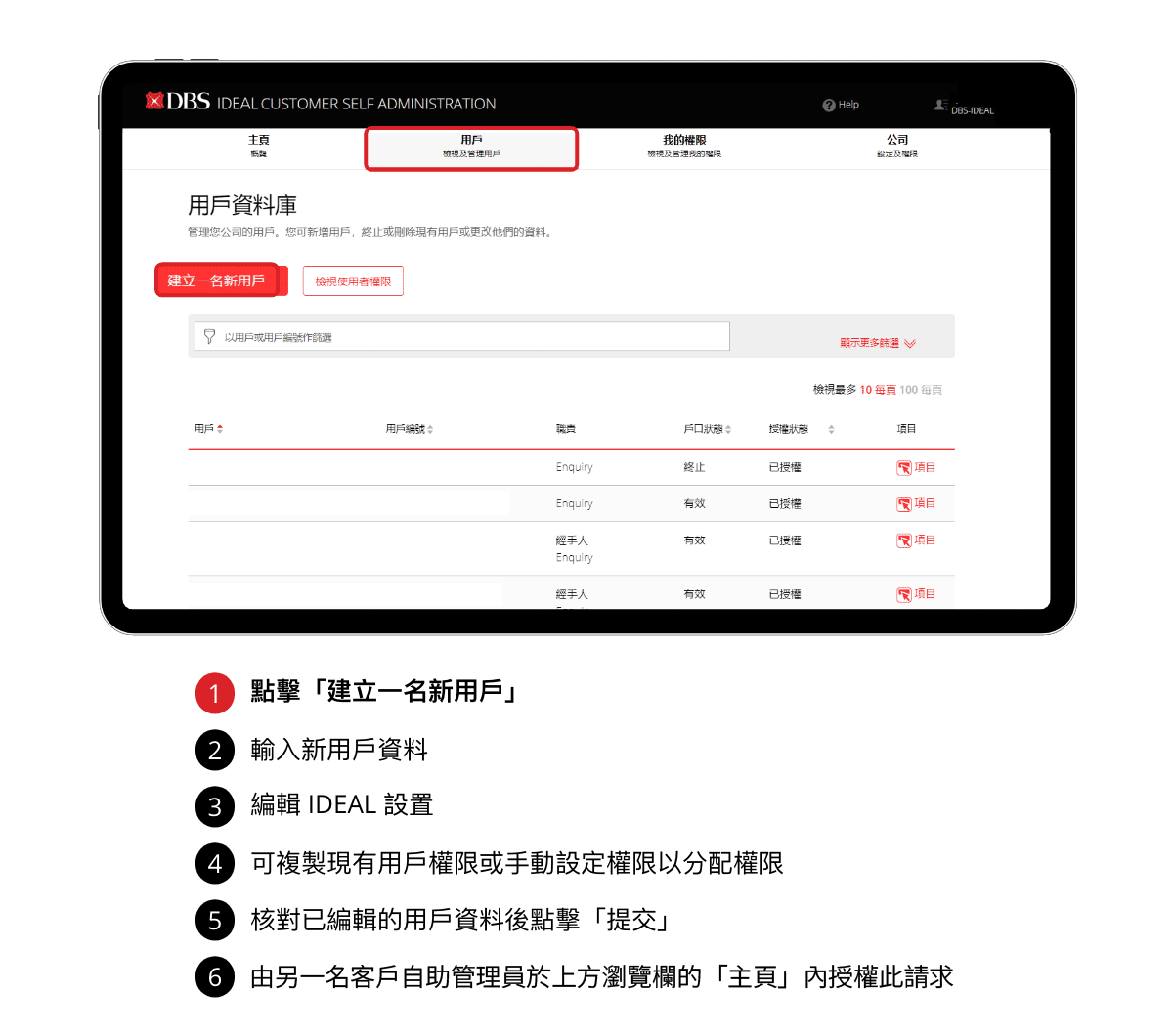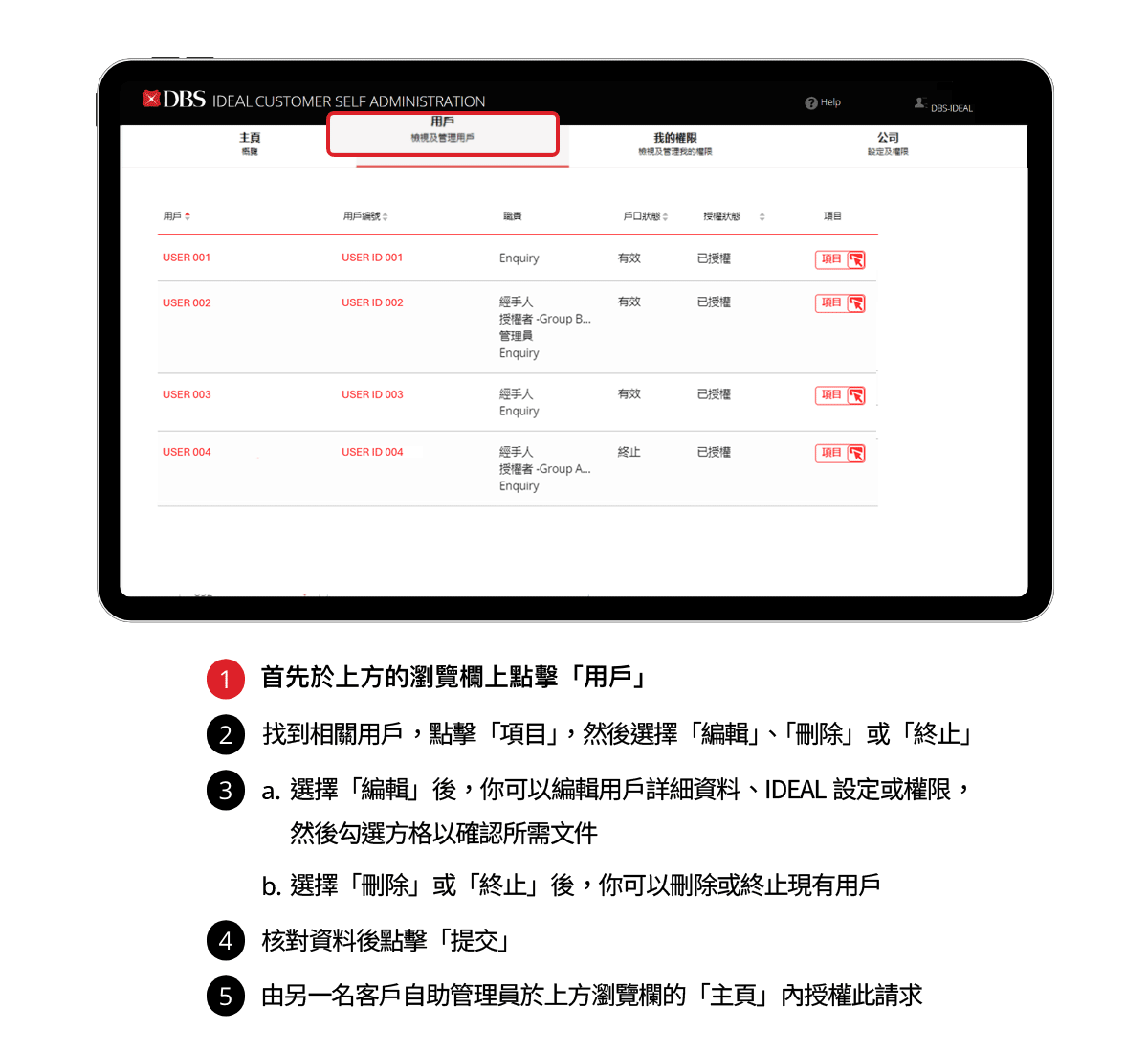 管理IDEAL用戶(新增 / 更改 / 刪除 / 終止用戶)