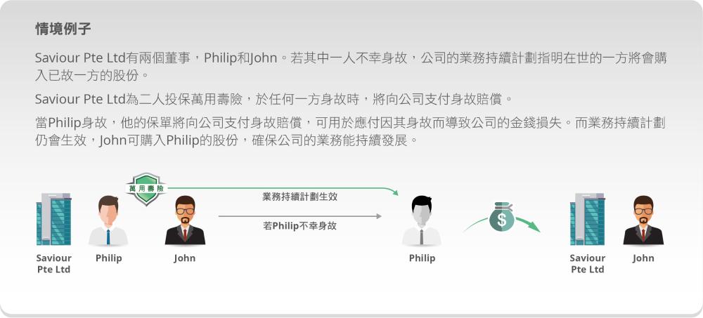 若公司的合夥人或股東不幸身故,買賣協議(業務持續計劃的一部分)便會啟動,並會跟據協議所定的條件購入已故人士持有股份。