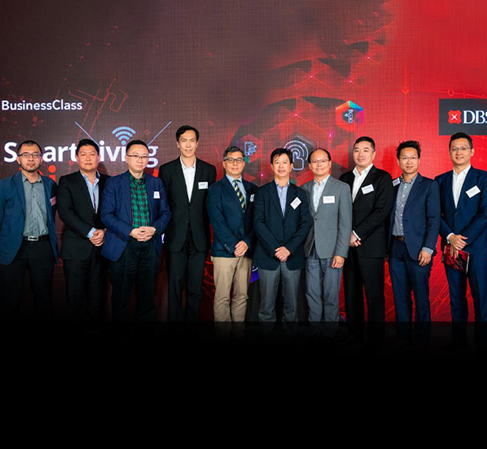 (From the left) Mr. Alexander Lau, Executive Director, Institutional Banking Group, Hong Kong, DBS Bank (Hong Kong) Limited; Ms. Lirranna Sun, Managing Director, Institutional Banking Group, Hong Kong, DBS Bank (Hong Kong) Limited; Mr. Alex Cheung, Managing Director and Head of Institutional Banking Group, Hong Kong, DBS Bank (Hong Kong) Limited, used an innovative approach to commence DBS BusinessClass Retailers Disrupt.