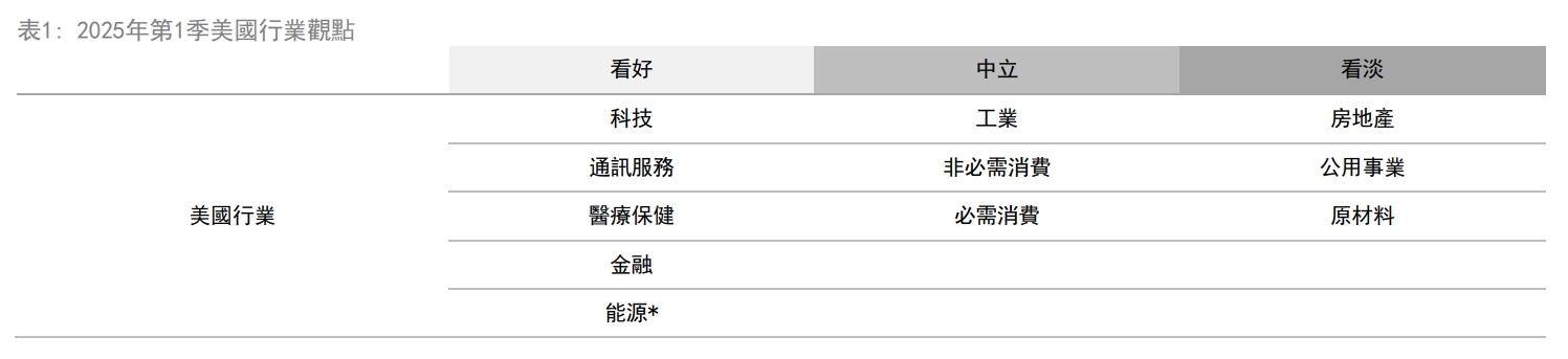 特朗普2.0的行業輪動。 即將上任的特朗普政府將放寬管制,並採取擴張性政策,這將轉化為更高的債券收益率和強勢美元。因此星展集團調整了對美股的行業觀點,本季的主要變動如下: