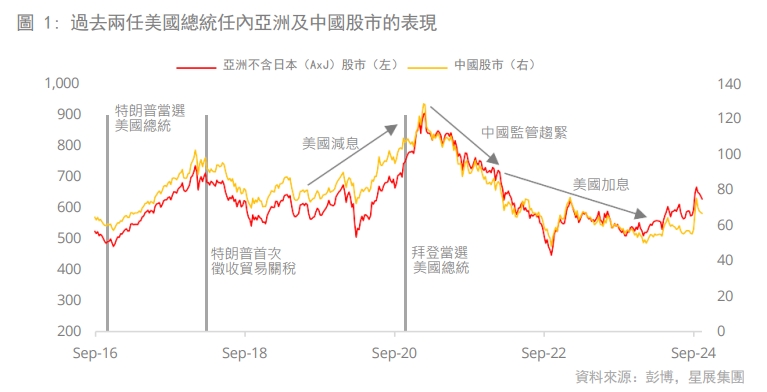美國總統大選結果增添亞洲不確定性,特朗普總統上任後恐將進一步擴大嚴厲的貿易政策。 然而,特朗普(2017年)和拜登政府時期的貿易關稅措施和選擇性進口限制,對中國股市整體表現並未產生重大影響。