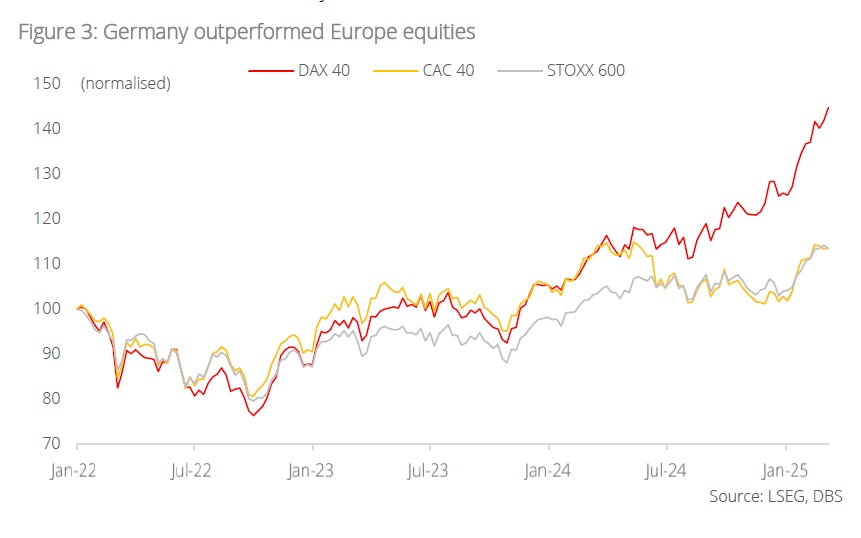Growing stock market optimism. The Deutsche Börse is well-diversified across sectors such as insurance, energy, defence, telecommunications, and technology. The top 10 stocks collectively account for 61% of the DAX 40’s total market capitalisation, with strong representation in preferred sectors such as technology, healthcare, and industrials. With the recent breakout in the DAX index, there is growing optimism that Germany’s economic downturn may have reached its nadir. As the second-largest stock market in the Eurozone after France, Germany’s market performance could provide a boost to the broader STOXX Index.