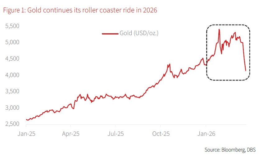 An atypical response to geopolitical risk. Gold has not reacted to the US-Iran war as it typically would in other conflicts. The expectation was for increased hedging demand and more durable risk premiums for gold, but the opposite has unfolded; aside from a momentary spike in the immediate aftermath of the opening strikes, gold has been on a sharp downward trajectory. As at 24 Mar, gold is hovering just above the USD4,300/oz. mark, and is roughly flat on a YTD basis. So why has gold made such unprecedented moves (again) and defied its role as a traditional safe haven amid the chaos of war? The short answer is inflation; markets are pricing in the probability of a protracted conflict, higher-for-longer energy prices, and eventually higher inflation and rates. The immediate selling pressure that we are witnessing is also liquidity-related to some extent, where gold is being used as a funding source for margin calls as the war continues to drive a volatile risk-off market. In short, there are both technical as well as fundamental factors that are worth noting for this sell-off.