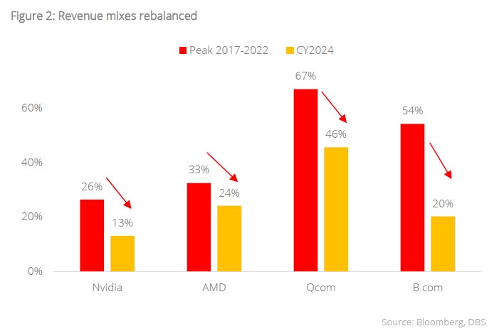 Rebalancing of revenue mix. Notably, leading IC design firms are undergoing a significant rebalancing in their revenue mix, with China’s contribution steadily declining. Nvidia’s China-derived revenue has dropped by half—from a peak of 26% to just 13%. Broadcom shows a similar trend, with China now contributing only 20%, down sharply from 54% at its peak (Figure 2).