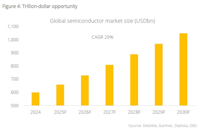 Capital spending to stay resilient. This dynamic wave of capital spending highlights the rising demand for next-gen AI capabilities, driving a surge in the need for high-performance logic, passive, and memory chipsets. This creates a lucrative opportunity for upstream semiconductor players to capitalise on the commercial benefits of advanced innovation.
