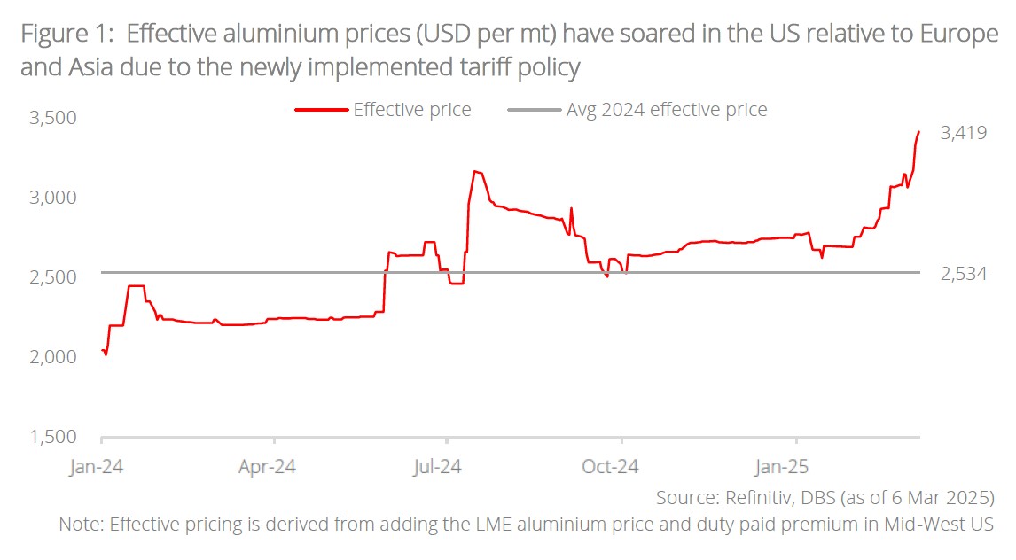 25% tariff on all aluminium imports into the US is set to weigh on beverage companies’ US operations, particularly brewers. Aluminium cans are a key packaging material across the beverage sector, with brewers having a higher can-packaging ratio of approximately 40% compared to c.25% for soft drink players. Following the tariff announcement, the US aluminium premium surged from an average of USD430 in 2024 to over USD900 by Mar 2025. This reflects an estimated 35% effective increase in US aluminium prices and a corresponding estimated 14% rise in US aluminium can costs. While soft drink companies like Coca-Cola are exploring a higher polyethylene terephthalate (PET) packaging mix to mitigate rising costs, brewers may have far less flexibility. PET poses taste preservation concerns for beer, while glass, although an alternative, has higher transportation costs, limiting substitution options. As a result, brewers with lower exposure to the US market and soft drink companies are likely to be less impacted by the increase in packaging costs.