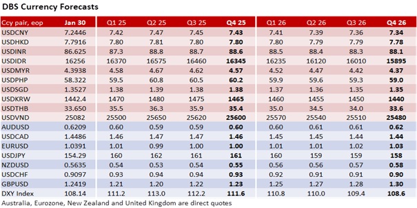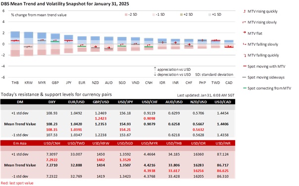 The greenback will likely be supported by US President Donald Trump’s rescheduled deadline to impose 25% tariffs on Mexico and Canada and an additional 10% tariff on China on February 1. ECB President Christine Lagarde warned that trade frictions could hurt global growth and upset the Eurozone’s recovery prospects. In contrast, the US economy remained resilient, bolstered by stronger consumer spending. Although real GDP growth slowed to an annualized 2.3% QoQ saar in 4Q24 from 3.1% in 3Q24, personal consumption expenditure growth accelerated to 4.2% from 3.7%. Not surprisingly, Fed Chair Jerome Powell appeared more concerned about Trump’s tariffs impacting inflation rather than growth.