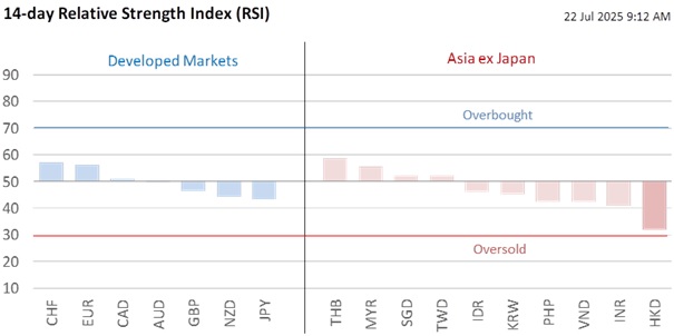 The JPY’s post-election rebound of 1% on Monday was seen as profit-taking on a widely anticipated outcome – the Ishiba government’s loss of its Upper House majority, which had already been priced in. While Prime Minister Shigeru Ishiba’s pledge to remain in office offered temporary reassurance about stability ahead of critical trade talks with the US, it does not ease worries about internal pressure within the Liberal Democratic Party to eventually replace a leader who has lost the majority in both houses of parliament. While the 10Y JGB yield has backed down from 1.60%, the market remains wary of more fiscal measures to address the opposition-led public discontent over inflation.