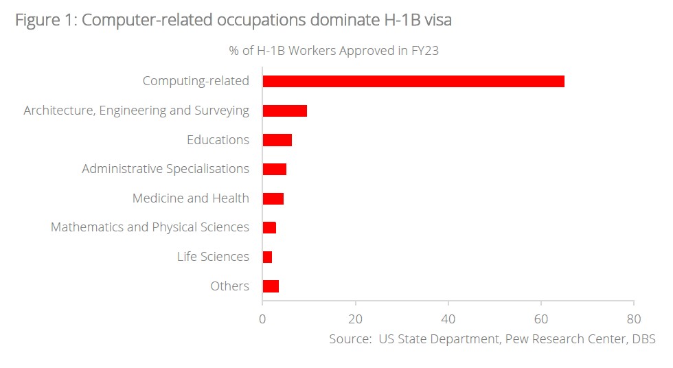 US: Tightening US visa policy provides a new landscape for skilled foreign workers. The US government has signed a proclamation that a USD100,000 fee will be applicable to every H-1B visa petition, though it subsequently clarified the nuances. Imposition of the fee on H-1B non-immigrant work visas will now apply a) only to new applications, not to current visa holders and renewals; b) as a one-time fee (at the end of the six-year cycle), rather than annually; and c) starting from next year’s lottery. With the extended payment timeline, the financial impact on companies is likely to be limited in the near-term.