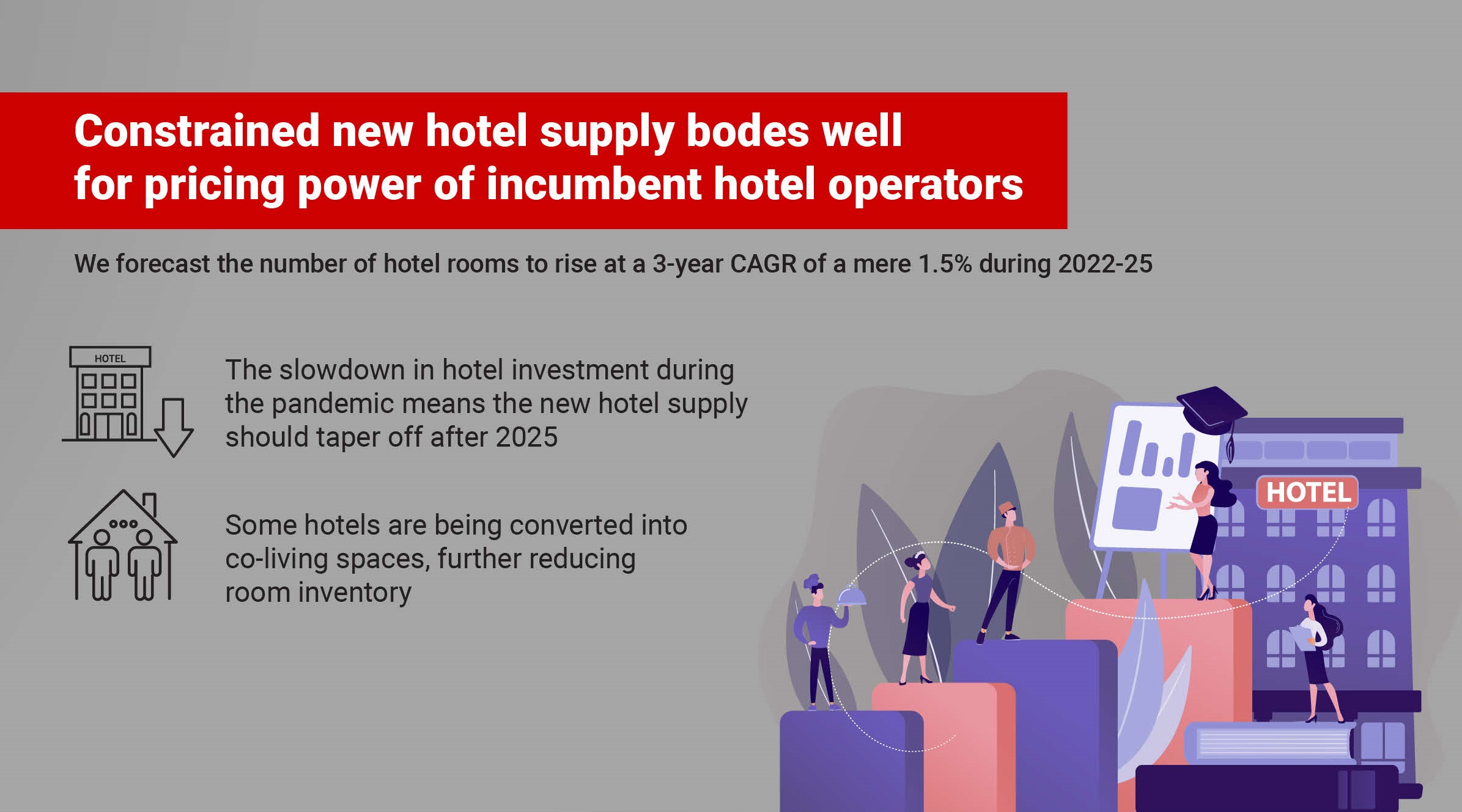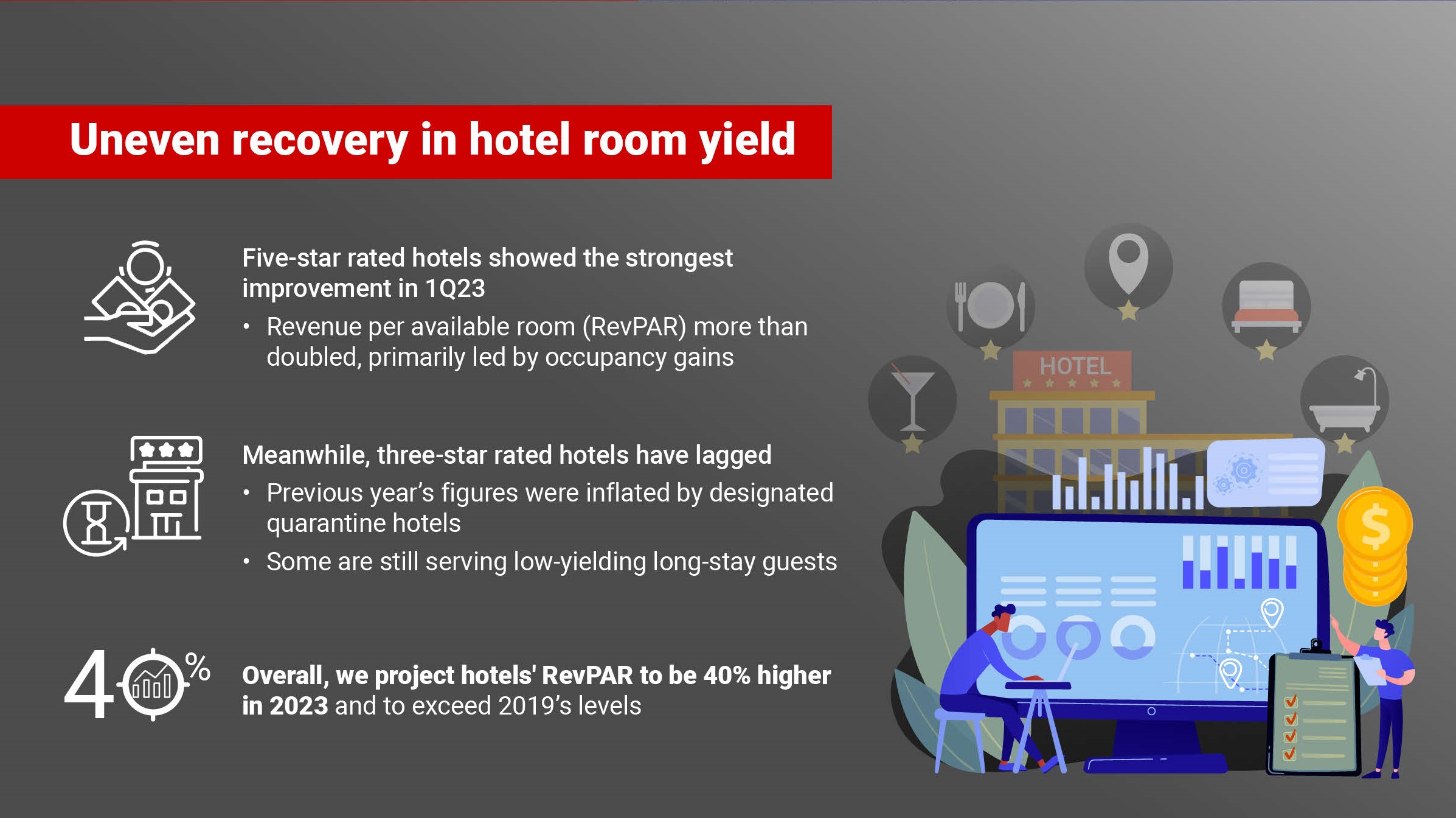 In view of hotel RevPAR recovery, especially five-star hotels are favoured.
