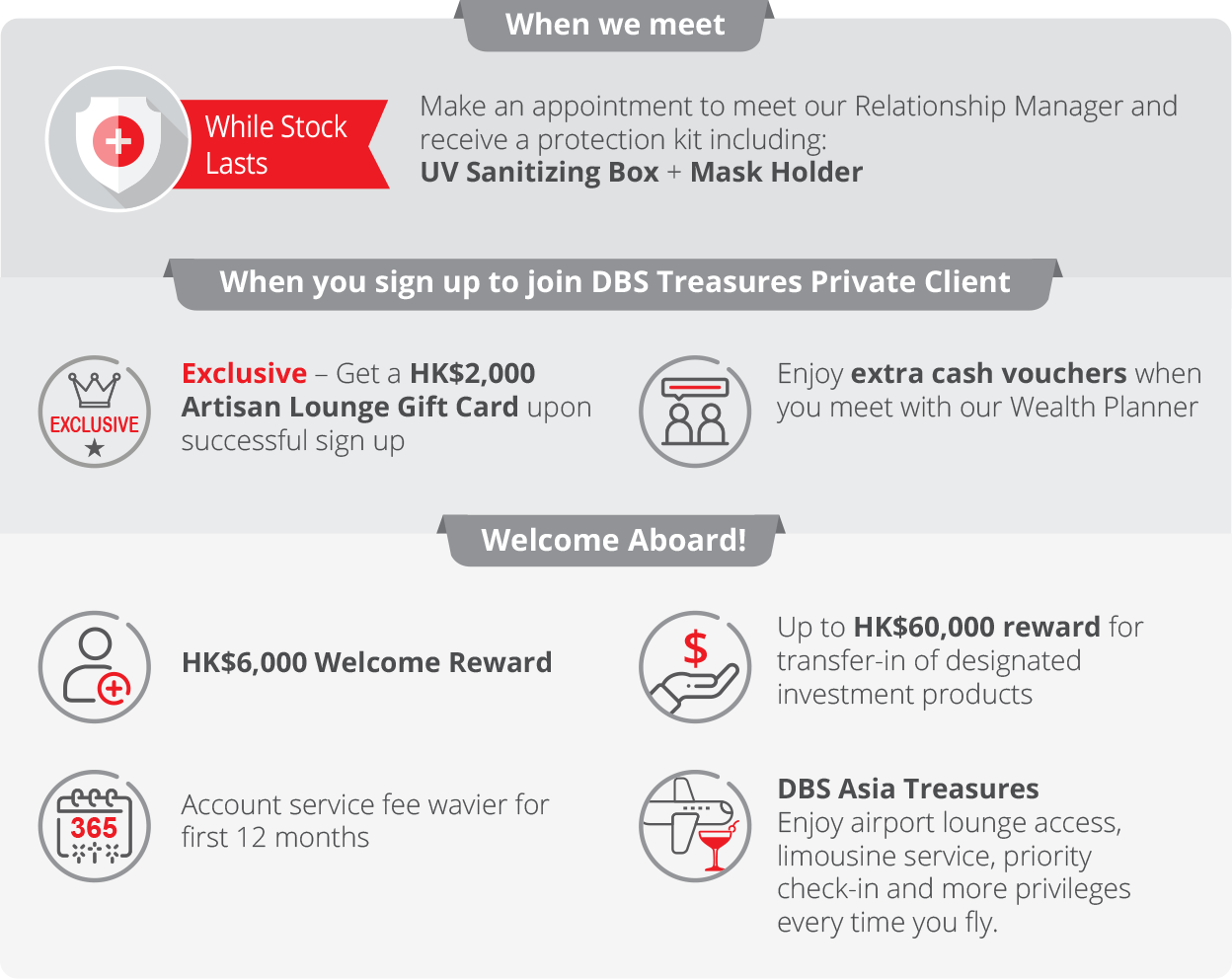 For details of the Welcome Offers of DBS Treasures Private Client, please click here.
