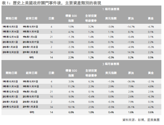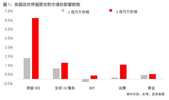 除了政治風波之外:經濟數據失靈的影響更為顯著。歷史經驗顯示,美國政府關門對市場基本上不會造成太大影響。但由於政府關門將導致勞工統計局暫時關閉,就業數據失靈可能導致市場混亂,並使美國聯儲局的決策更加困難。投資策略應保持多元化,保護投資組合的下行風險。