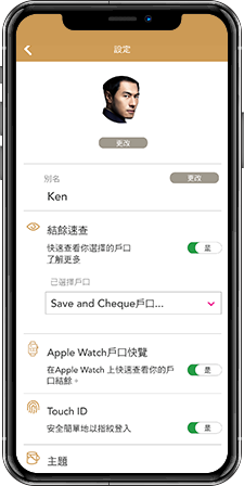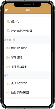 DBS iWealth® 使用指引 個人化設定 如何啟動指紋或Face ID登入、結餘速查、自訂個人頭像及別名? 了解更多 > 登入後點選左上角清單圖示,點選設定。 從設定中選擇個人化選項。 使用手機短訊「一次專用密碼」或「保安編碼器」進行身份認證。 完成身份認證後,於個人化設定,啟動指紋*或Face ID**登入;結餘速查,並選擇戶口作結餘速查,您亦可在此自訂您的個人頭像及別名。 關閉 影片 流動應用程式版本 > 網上版本 > 使用指南 流動應用程式版本 > 網上版本 >