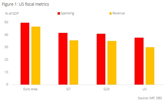 US: Fiscal troubles and worsening growth momentum. US public sector debt burden, at 121% of GDP, is at an uncomfortable level, as is the fiscal deficit, at 7.5% of GDP. US authorities are keen to tackle this, as seen in the flurry of government worker firings and cancellation of projects. Despite a sharp rise in recent years, US public sector spending as a share of GDP is much smaller than it is in Europe or among the G20 nations. The key issue is the sub-30% of GDP revenue ratio in the US. Solving debt and deficit issues in a sustainable manner would entail raising taxes, which unfortunately is highly unlikely.