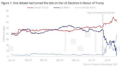 Turning of the tides. It takes only moments to alter destinies – incumbent President Joe Biden’s poor showing in the Presidential debates has led to an abrupt end in his bid for re-election. What was initially a tight toss-up between two leading candidates has now evolved into a clear lead by the Republican nominee Donald Trump. Even then, he was not without his own destiny-altering moment; the ex-President had to literally dodge a bullet in a botched assassination attempt to take pole position in this presidential race. Now that the dust has settled, it is perhaps a little safer for fixed income investors to look ahead to ascertain what a second Trump administration might imply for the markets.