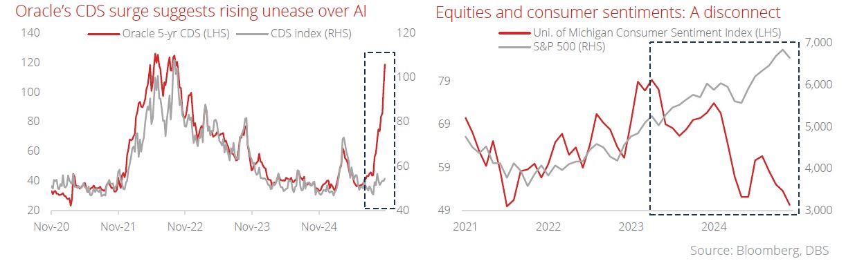 • Oracle’s credit default swap seen as a barometer for investors’ unease over AI risk and last week, its surge to 1.19 %pts a year suggests rising caution against the AI boom