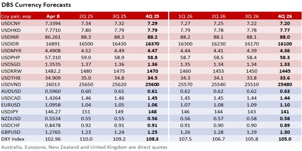 Offshore USD/CNH rose 1.1% to 7.4257, a new lifetime high. The People’s Bank of China set the onshore USD/CNY daily reference rate to 7.2038 yesterday, its highest level since September 2023. China stood by its decision to retaliate with an equivalent 34% tariff, mirroring the rate the US imposed on China on Liberation Day. The Commerce Ministry said China would “fight to the end” against US “blackmail.” With China not backing down, US President Donald Trump scrapped meetings with China and will likely lift tariffs on Chinese imports by another 50% to 104% today, which will likely prompt another response from China.