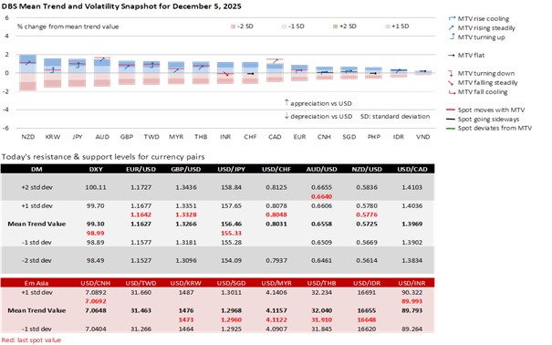 USD/CAD broke decisively below 1.40 last week to 1.3817, retracing some 50% of July-November’s rise. Following stellar Canadian jobs data, no one expects the Bank of Canada to mirror the Fed’s expected cut this week. In contrast to the soft US labour market, Canada’s unemployment rate fell to 6.5% in November, bucking the consensus for an increase to 7% from 6.9% in October. Apart from 275 bps of rate cuts since mid-2024, the Canadian economy is also supported by a fiscally stimulative budget. Hence, the BOC is unlikely to take any chances even though inflation has been near target. Look for the BOC to signal an extended pause at this Wednesday’s meeting. The OIS market is more hawkish and has started positioning for a possible BOC hike in late 2026. Look for any correction to reinstate USD/CAD shorts to September’s low of 1.3725.