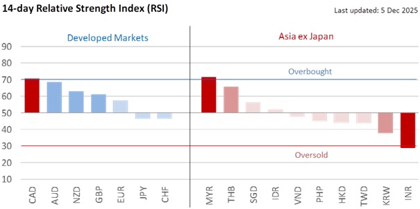 AUD has the strongest policy divergence story, with the futures market pricing in a possible 2026 hike. In contrast to the Fed, the Reserve Bank of Australia is prioritising inflation over jobs in its dual mandate. Both CPI and core inflation have risen above the RBA’s 2-3% target band, while the unemployment rate is slightly below the NAIRU, or the non-accelerating inflation rate of unemployment. During the Senate hearing on December 3, RBA Governor Michele Bullock said the private sector may be starting to take over from the public sector as the driver of economic growth. Bullock rejected allegations that the monetary policy was responsible for rising housing prices.