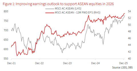 We maintain our constructive view on Indonesia, projecting it to deliver the strongest earnings growth in ASEAN at +19% y/y in 2026 with an attractive PEG ratio of 0.8x (vs regional peers’ average: 1.6x) and healthy dividend yields. This impressive earnings trajectory is underpinned by expansionary fiscal stimulus and accommodative monetary policies, aimed at bolstering GDP growth and supporting IDR. Against this backdrop, our preference leans towards domestic demand-beneficiaries – including telecommunications – and select commodities, which should benefit from anticipated upswing in 2026 prices.