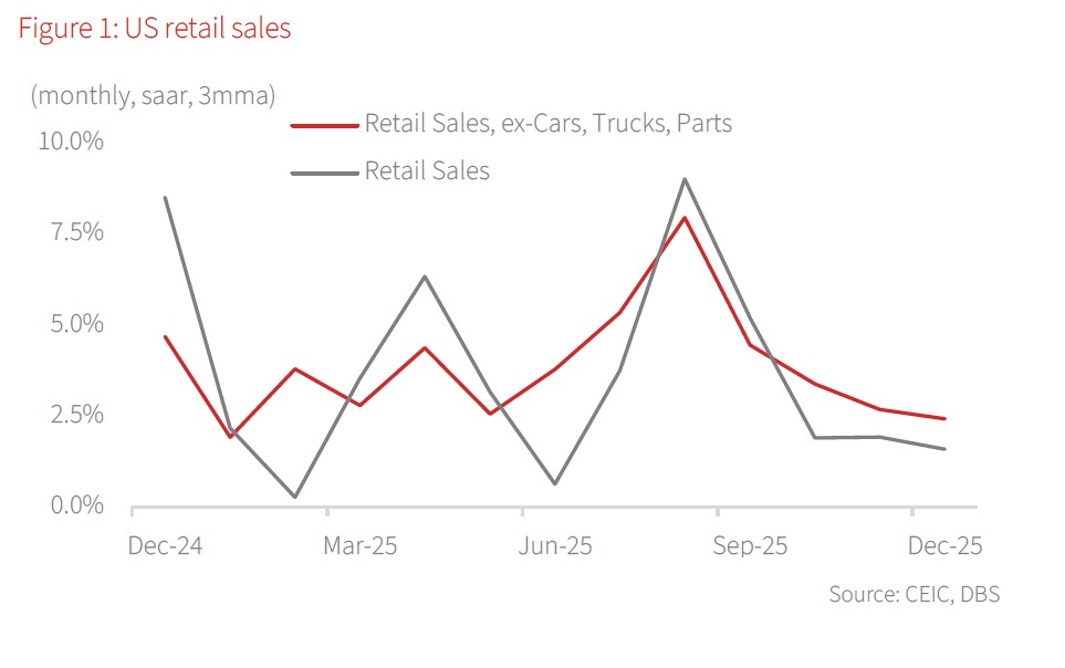US: Slowing US consumption; we pencil two rate cuts in 2H26. Despite trade wars and policy uncertainty, sticky inflation, and geopolitical tussles, US consumption remained strong through 2025. We estimate a 4% growth in retail spending last year – the highest in three years. However, there are early signs of a slowdown, especially in the 4Q25 data. We estimate progressively slower retail sales growth from September onward across various permutations of the data (e.g. including or excluding auto sales). The implication of this development is visible in real-time GDP estimates. The Atlanta Fed’s recent downward revision of its US GDP Nowcast, from over 5% to over 3%, has been driven entirely by slowness in consumption growth.