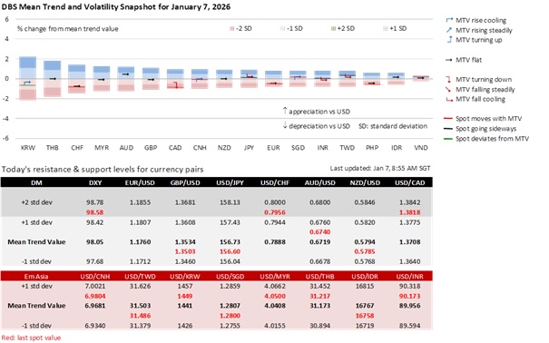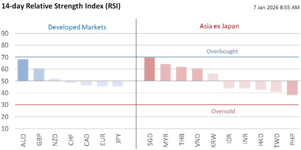 On Monday, we cautioned that exchange rates are likely to be mixed than trending in January. The USD’s December sell-off was driven by monetary policy divergences in the futures/OIS markets, i.e., more Fed cuts vs. rate hikes in some Developed Market economies in 2026. However, markets also expected all central banks to stand pat at their first policy meeting this year. Until US President Donald Trump nominates a Fed Chair to succeed Powell, economic data will likely be in the driver’s seat, raising questions about asymmetric interest rate movements across countries.