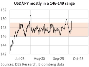 JPY bears also need to watch out for a softer USD tone. There is no indication when the US government will reopen after shutting down on October 1. The Fed and markets will be flying blind without data from the Bureau of Labor Statistics, the agency responsible for releasing last Friday’s US monthly jobs data, next week’s CPI, and weekly jobless claims.