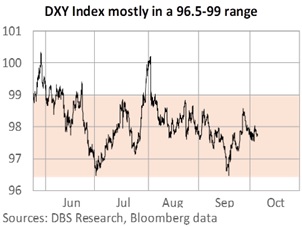 The information herein is published by DBS Bank Ltd and/or DBS Bank (Hong Kong) Limited (each and/or collectively, the “Company”). It is based on information obtained from sources believed to be reliable, but the Company does not make any representation or warranty, express or implied, as to its accuracy, completeness, timeliness or correctness for any particular purpose. Opinions expressed are subject to change without notice. This research is prepared for general circulation. Any recommendation contained herein does not have regard to the specific investment objectives, financial situation and the particular needs of any specific addressee. The information herein is published for the information of addressees only and is not to be taken in substitution for the exercise of judgement by addressees, who should obtain separate legal or financial advice. The Company, or any of its related companies or any individuals connected with the group accepts no liability for any direct, special, indirect, consequential, incidental damages or any other loss or damages of any kind arising from any use of the information herein (including any error, omission or misstatement herein, negligent or otherwise) or further communication thereof, even if the Company or any other person has been advised of the possibility thereof. The information herein is not to be construed as an offer or a solicitation of an offer to buy or sell any securities, futures, options or other financial instruments or to provide any investment advice or services. The Company and its associates, their directors, officers and/or employees may have positions or other interests in, and may effect transactions in securities mentioned herein and may also perform or seek to perform broking, investment banking and other banking or financial services for these companies. The information herein is not directed to, or intended for distribution to or use by, any person or entity that is a citizen or resident of or located in any locality, state, country, or other jurisdiction (including but not limited to citizens or residents of the United States of America) where such distribution, publication, availability or use would be contrary to law or regulation. The information is not an offer to sell or the solicitation of an offer to buy any security in any jurisdiction (including but not limited to the United States of America) where such an offer or solicitation would be contrary to law or regulation.