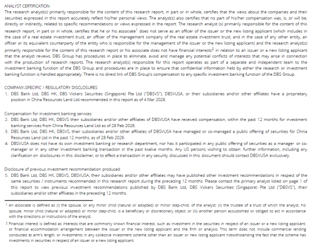 This report is prepared by DBS Bank (Hong Kong) Limited (“DBS HK”). This report is solely intended for the clients of DBS Bank Ltd., DBS HK, DBS Vickers (Hong Kong) Limited (“DBSV HK”), and DBS Vickers Securities (Singapore) Pte Ltd. (“DBSVS”), its respective connected and associated corporations and affiliates only and no part of this document may be (i) copied, photocopied or duplicated in any form or by any means or (ii) redistributed without the prior written consent of DBS HK.
