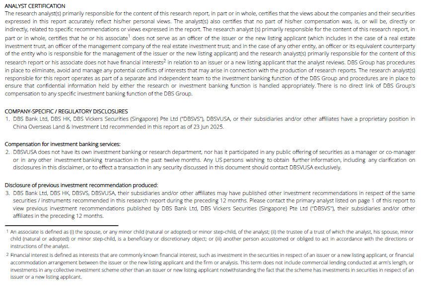 This report is prepared by DBS Bank (Hong Kong) Limited (“DBS HK”). This report is solely intended for the clients of DBS Bank Ltd., DBS HK, DBS Vickers (Hong Kong) Limited (“DBSV HK”), and DBS Vickers Securities (Singapore) Pte Ltd. (“DBSVS”), its respective connected and associated corporations and affiliates only and no part of this document may be (i) copied, photocopied or duplicated in any form or by any means or (ii) redistributed without the prior written consent of DBS HK.