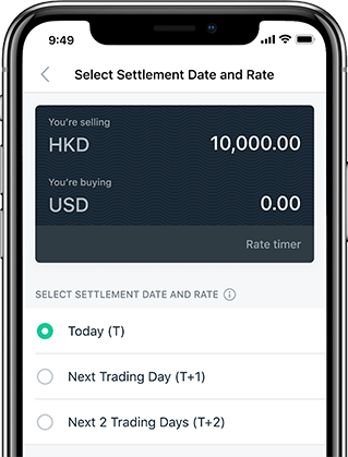 *An FX instruction placed within Wealth Management Accounts or within Multi-Currency Savings Accounts before the relevant cut-off time will be processed instantly in general. However, the crediting of funds may vary depending on the cut-off time and local public holidays. For more details, please refer to www.dbs.com.hk/ibanking/ft-time1.html.