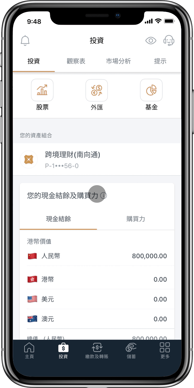 - Step 1: 於投資頁面,在外匯下方點選「投資」